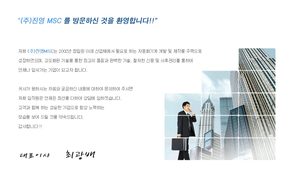 주소 : 경북 칠곡군 석적읍 석적로 405-8 (주)진영MSC 대표 : 최광배 TEL) 054-976-0488 FAX) 054-975-0486사업자등록번호 : 513-81-55621 / Copyright(c)2006~ JYMSC. All rights reserved. 관리자